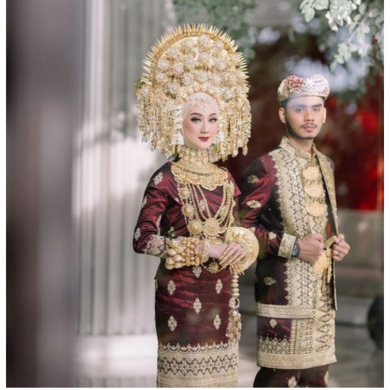 Satu set pakaian adat khas bugis makassar kombinasi warna merah maron.